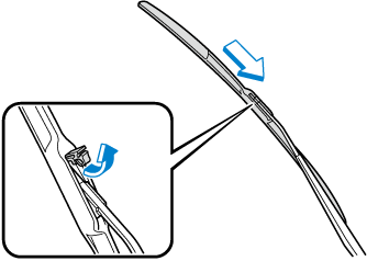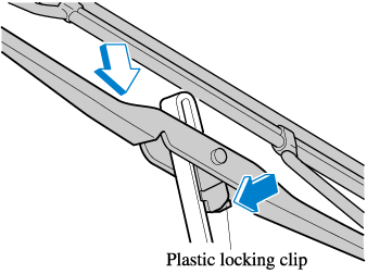Raise the wiper arm and turn the blade assembly to expose the plastic locking clip.