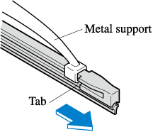 Hold the end of the rubber and pull until the tabs are free of the metal support.