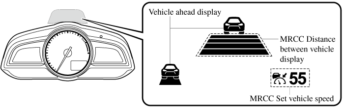 The MRCC with Stop & Go function setting status and operation conditions are indicated on the active driving display.