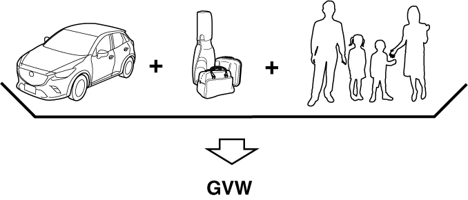 GAW (Gross Axle Weight) is the total weight placed on each axle (front and rear) - including vehicle curb weight and all payload.