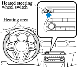 Press the switch to turn on the heated steering wheel. The heated steering wheel operates for about 30 minutes and then turns off automatically.