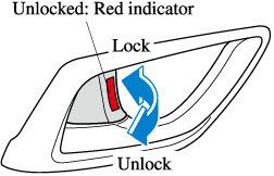 To lock any door using its door-lock knob from the outside, press the door-lock knob to the lock position and close the door (holding the door handle in the open position is not required).