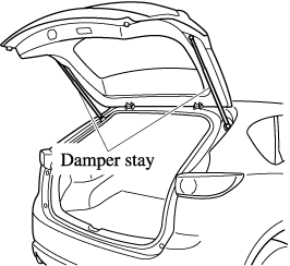 Do not modify or replace the liftgate damper stay. Consult an Authorized Mazda Dealer if a liftgate damper stay is deformed or damaged for reasons such as a collision or if there is some other problem.
