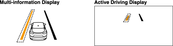 If the system determines that the vehicle may deviate from its lane, the color of the lane line on the side being detected by the system changes from white to amber, and flashes.