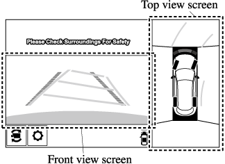 Displays the image of the area around the vehicle and the vehicle front.