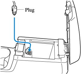 2. Pass the connection plug cord through the cutout of the console and insert the plug into the accessory socket.