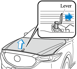 2. Insert your hand into the hood opening, slide the latch lever to the right, and lift up the hood.