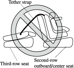 Using a third-row seat tether anchor on the second-row seat is dangerous. The child-restraint system cannot be installed correctly which may result in death or injury to the child in a collision.