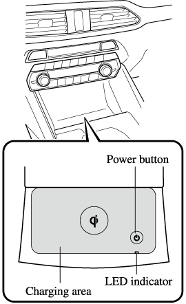 Do not use the Wireless Charger (Qi) when it is malfunctioning. In addition, if smoke, abnormal noise, or abnormal smell is emitted from the Wireless Charger (Qi), stop the vehicle in a safe place, switch the ignition OFF, and consult an Authorized Mazda Dealer.