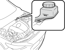 Inspect the fluid level in the reservoir regularly. It should be kept between the MAX and MIN lines.