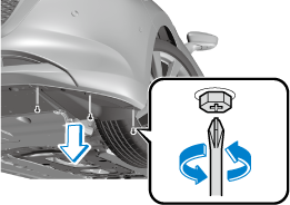 Turn the screw counterclockwise and remove it, and then partially peel back the mudguard.