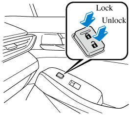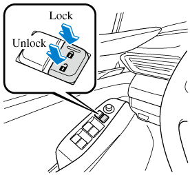 To lock all the doors from an open front door, press the lock side of the door lock switch and then close the door.