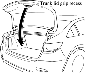 To close, lower the trunk lid slowly using the trunk lid grip recess, and then push the trunk lid closed using both hands.