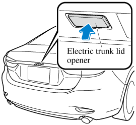The trunk lid can be closed when the doors are locked with the key left in the vehicle. However, to prevent locking the key in the vehicle, the trunk lid can be opened by pressing the electric trunk lid opener. If the trunk lid cannot be opened despite doing this procedure, press the electric trunk lid opener to fully open the trunk lid after pushing the trunk lid completely closed.