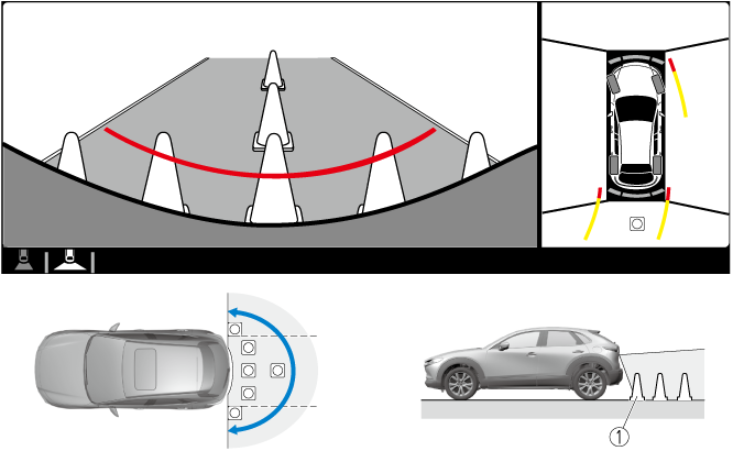Use the top view/rear wide view to assist in checking the safety of the surrounding area when accelerating from a stop, parking, or stopping the vehicle.