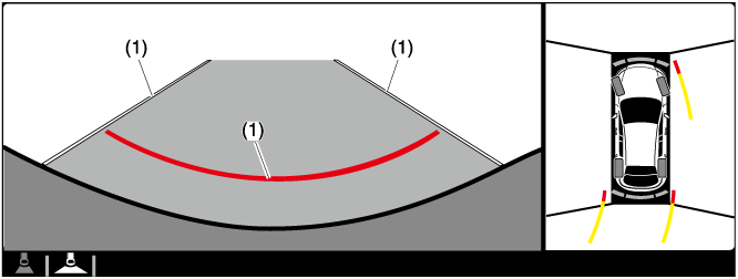 These guide lines indicate the approximate width of the vehicle and distance to a point measured from the rear of the vehicle (from the end of the bumper).
