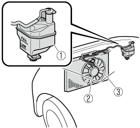 Pull over to a safe location, then switch the ignition off and make sure the fan is not running before attempting to work near the cooling fan:
