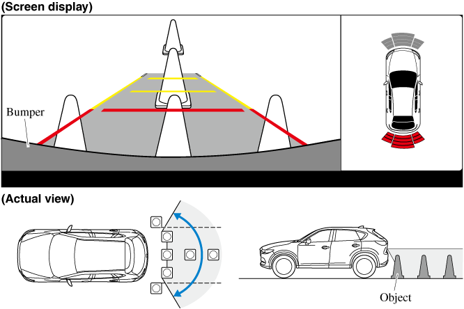 • The displayable range is limited. Objects under the bumper or around the bumper ends cannot be displayed.