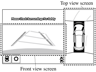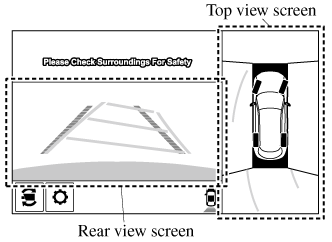 Displays the image of the area around the vehicle and the rear of the vehicle.