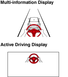 If you take your hands off the steering wheel, a warning is indicated on the multi-information display and the active driving display. Then, if you continue to leave your hands off the steering wheel, a warning is indicated on the multi-information display and the active driving display and a warning sound is activated.