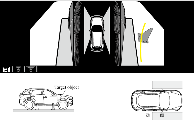 The parking sensor detection range has limitations. For example, obstructions closing in from the side and objects short in height may not be detected. Always confirm the safety around the vehicle visually when driving.