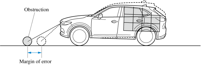 There might be some margin of error between the road surface appearing on the screen and the actual road surface. A margin of error in the perceived distance could lead to an accident, therefore be aware of the following conditions which can more easily produce errors in the perceived distance.