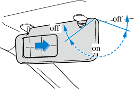 To prevent the battery from being discharged, the vanity mirror will only illuminate in the tilt range shown in the figure.