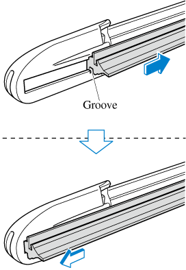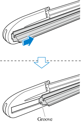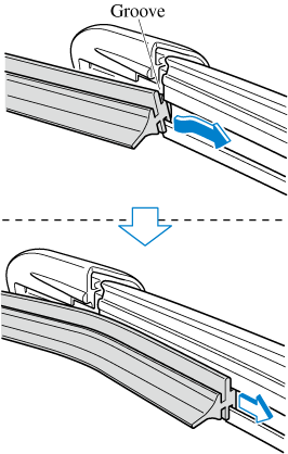 Insert the end of the new blade rubber into the groove of the blade holder until it contacts the end of the blade holder.
