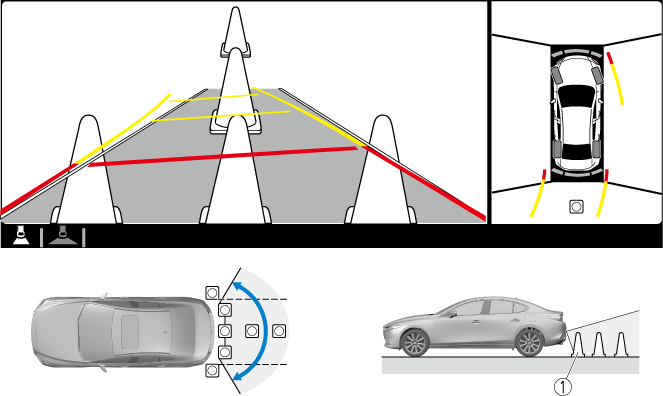 The parking sensor detection range has limitations. For example, obstructions closing in from the side and objects short in height may not be detected. Always confirm the safety around the vehicle visually when driving.