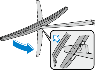 Firmly rotate the wiper blade to the right until it unlocks, then remove the blade.