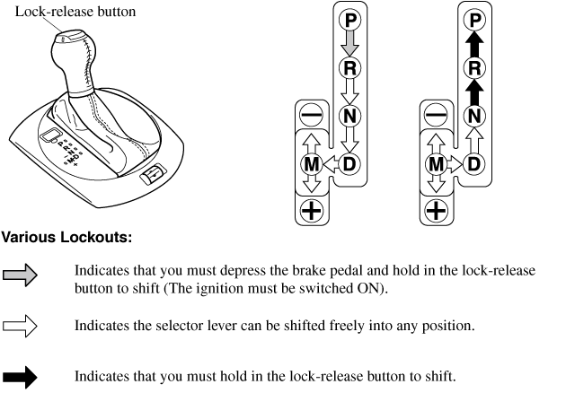 The Sport AT has an option that is not included in the traditional automatic transmission that gives the driver the option of selecting each gear instead of leaving it to the transmission to shift gears. Even if you intend to use the automatic transmission functions as a traditional automatic, you should also be aware that you can inadvertently shift into manual shift mode and an inappropriate gear may be retained as the vehicle speed increases. If you notice the engine speed going higher or hear the engine racing, confirm you have not accidentally slipped into manual shift mode (Search).
