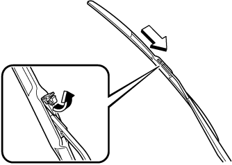 Raise the wiper arm and turn the blade assembly to expose the plastic locking clip.
