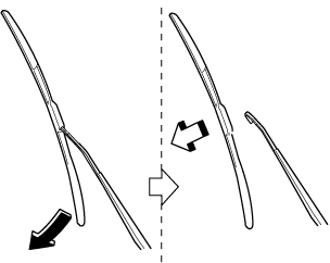 Open the clip and slide the blade assembly in the direction of the arrow.