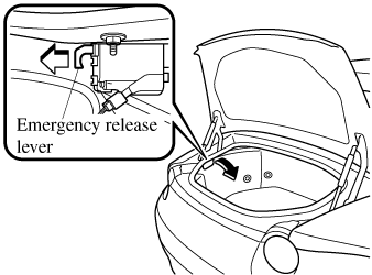 Partially peel back the cover inside the trunk, then pull the emergency release lever.