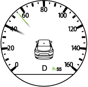 The vehicle speed preset using the cruise control is displayed.