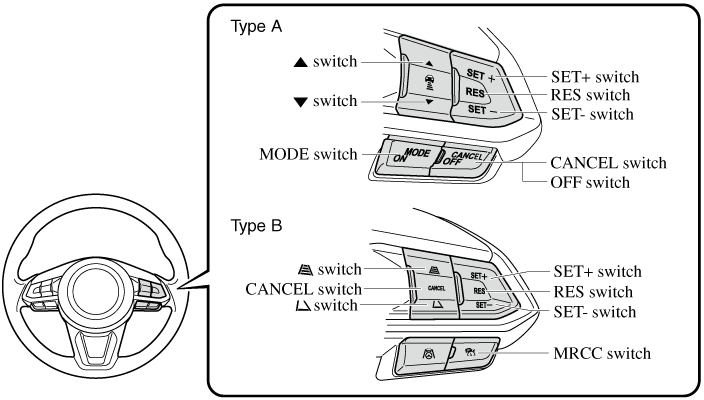 The MRCC with Stop & Go function can switch to the cruise control function.