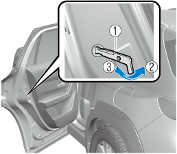 Rear doors that have been locked using the child safety lock switched to the lock side cannot be opened from inside the vehicle.