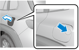 Press the location shown in the illustration and open the fuel lid.