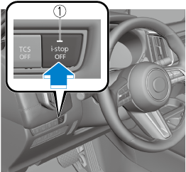 When pressing the switch, the i-stop function stops and the i-stop OFF switch indicator light turns on. If the switch is pressed again, the i-stop function becomes operational and the i-stop OFF switch indicator light turns off.