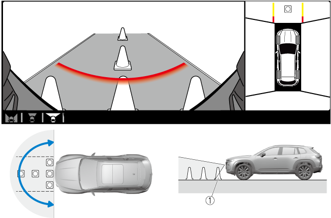 Indicates the approximate width of the vehicle and the distance (from front end of bumper) in front of the vehicle.