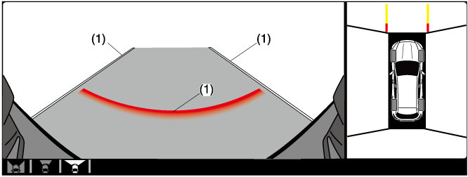 Extended vehicle width lines and distance guide lines (blue & red) |