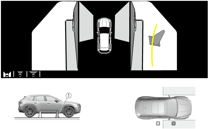 The parking sensor detection range has limitations. For example, obstructions closing in from the side and objects short in height may not be detected. Always confirm the safety around the vehicle visually when driving.