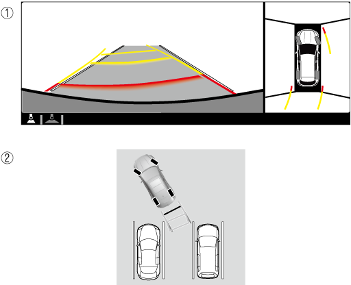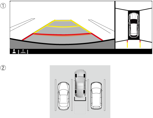 The following shows an example of vehicle parking with the steering wheel turned to the left while backing up the vehicle. When backing into a parking space from the opposite direction, the steering operation is reversed.