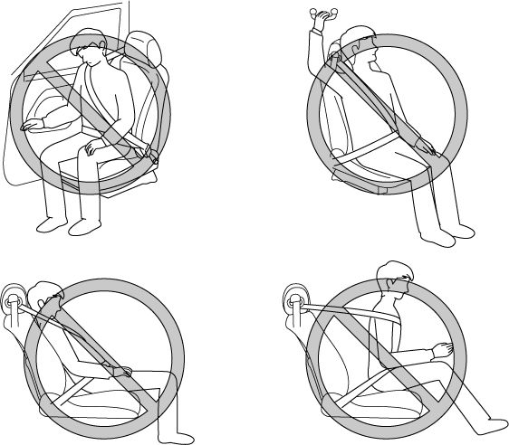 Sitting in the front passenger's seat with a posture which makes it difficult for the front passenger occupant classification sensor to detect the occupant correctly is dangerous. If the front passenger occupant classification sensor cannot detect the occupant sitting on the front passenger's seat correctly, the front passenger front and side air bags and pretensioner system may not operate (non-deploy) or they may operate (deploy) accidentally. The front passenger will not have the supplementary protection of the air bags or the accidental operation (deployment) of the air bags could result in serious injury or death.