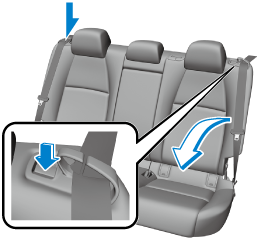 Open the trunk lid and pull the lever of the seatback you want to fold down.