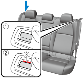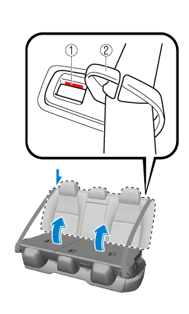 If the red indication is visible behind the push knob, it means the seatback is not locked. If the vehicle is driven without the seatback locked, it could fold down suddenly and cause an accident.