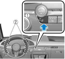 • If the heated steering wheel switch is pressed during auto mode, the heated steering wheel switches to manual mode. To return to auto mode, press the AUTO switch.