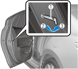 Rear doors that have been locked using the child safety lock switched to the lock side cannot be opened from inside the vehicle.
