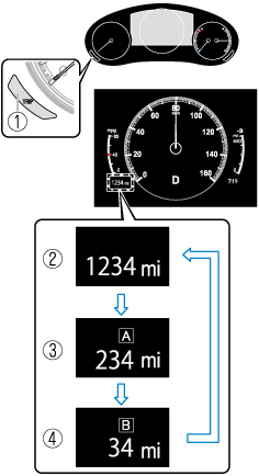The driving distance for a specified interval is indicated. Two types (TRIP A, TRIP B) of interval distance can be measured.