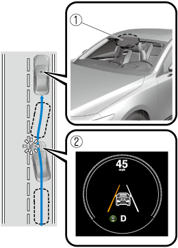 The LDWS alerts the driver that the vehicle may be deviating from its lane. The system detects the white (yellow) lines on the traffic lane using the forward sensing camera (FSC) and if it determines that the vehicle might be deviating from its lane, it notifies the driver by the LDWS.